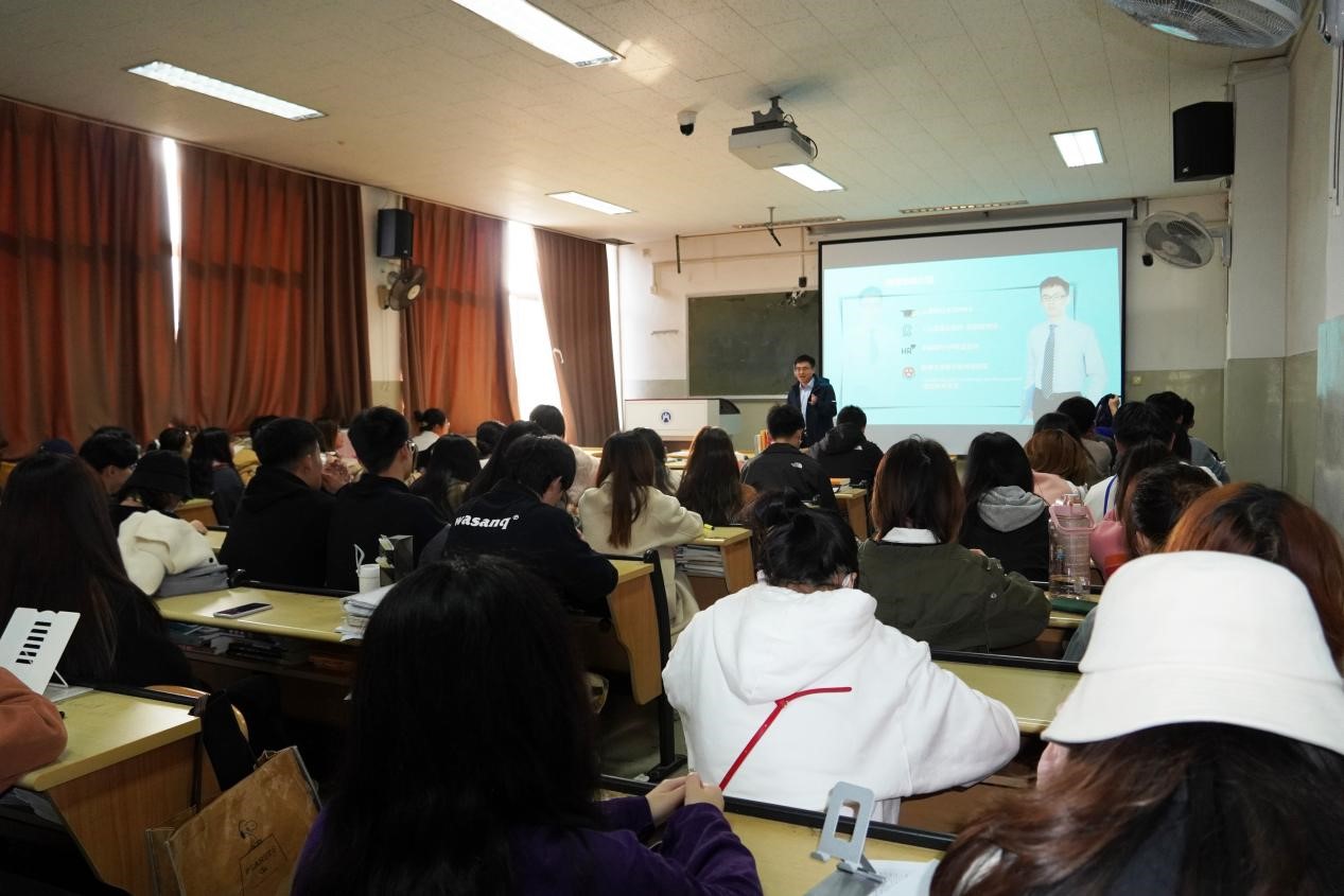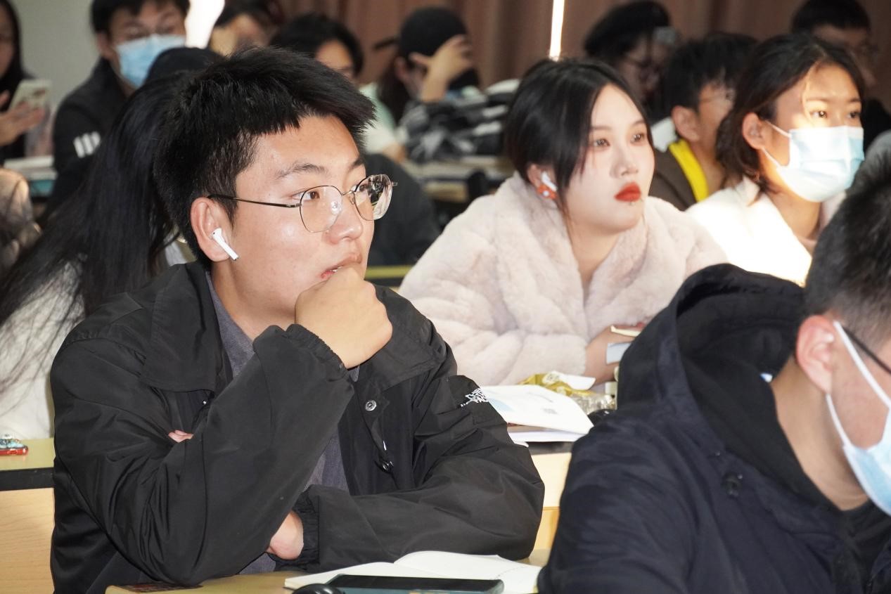 丛老师首先阐述了大学生应提升人生辨识度,做一个人品与衣品相得益彰的人,讲述了在不同场合的形象与仪容的重要性,并叙述了作为大学生应如何做一个自信的演讲者,与大家分享了相关的演讲技巧以及自己演讲时的经历和经验。随后丛老师为大家提出四条职场小建议,一是要做好一份优秀的简历,二是要准备一套适合自己风格的西装,三是要准备一个官方的邮箱,四是要学会制作美观的幻灯片,这些实用的技巧与切实的建议使大家受益匪浅。紧接着,丛老师强调专业学习的重要性,指出大学生要咬定“专业”不放松,做一个踏实的读书人,表明同学们应该对自己有一个明确而精准的定位,构建学习性组织,绘制个人学习发展蓝图和实施纲要,要在大学的学习生活中有目标地发展自己相应的才能,只有如此才有机会从日益激烈的竞争中找到自己前行的方向。丛老师强调影响大学生成长的是逻辑与格局,并对其结合其个人经历进行进一步的解释说明,提出大学生要学会做一个链接职场的社会人,主张同学们要有属于自己的职业、生活、交友圈。其次,丛老师就“榜样”“心态”“原始积累”以及“好组织好工作”展开讲解,希望同学们学会从身边优秀的人才身上吸收优点来弥补自己的不足,能够不积硅步进行点滴积累促成质变,与此同时强调在学习生活中,稳定心态的重要性,并为同学们的职业方向选择作出了引导。