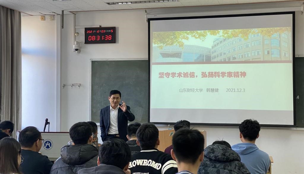 讲座中,韩慧健院长从科学精神、科研道德、论文规范等角度展开讲解,通过一个个真实鲜活的案例介绍了国内外科学研究过程中出现的学术不端行为,为同学们敲响了警钟,敦促同学们在今后的研究和学习过程中严守学术底线,坚决避免学术不端行为。同时,韩院长为学生提出了“弘扬科学精神,坚守科学道德,遏制学术不端,共建良好学风”的殷切希望。