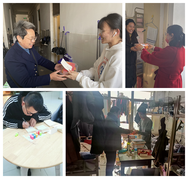 12月15日,老师们来到学生公寓一边派送惊喜礼盒,一边详细询问毕业生们的复习备考情情况、求职就业情况和未来规划等,嘱咐同学们在备考冲刺阶段,要注意劳逸结合,要以最饱满的状态参加考试,同时更要注意身体健康,保持积极放松的心态,迈好走向社会的第一步。