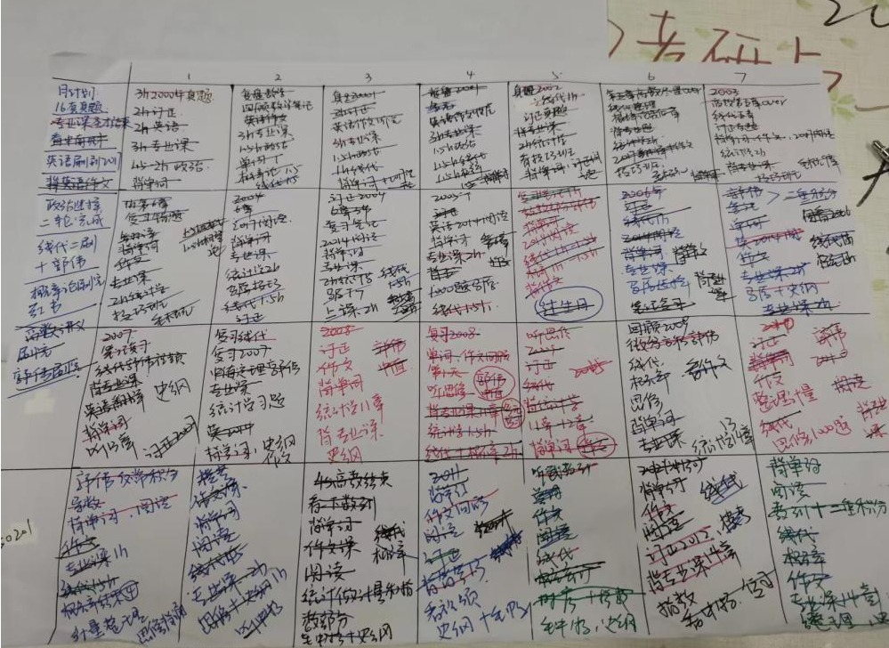尚方剑将自己的政治学习规划按时间线铺展开,分享了自己在不同备考间段所用的学习资料。8月至9月中旬,观看学习徐涛老师的强化课并完成1000”;9月中旬至11月,通过听陆寓丰老师的线上课巩固知识点;11月至12月,完成“肖秀荣冲刺八套卷”最后,考试前结合“研木易”公众号上的资料着重复习背诵主观题部分。