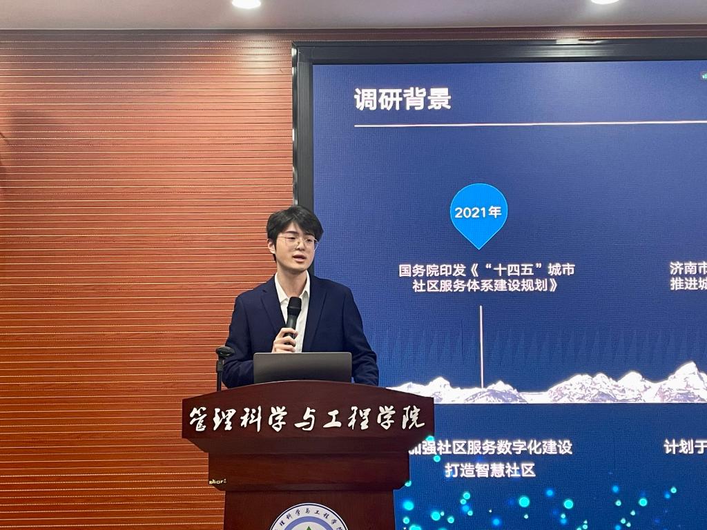 此次展示的实践活动中,济南市智慧社区居民幸福感调查团队对三个社区进行了实地考察,通过问卷、访谈的形式收集信息,之后运用数据分析等方法剖析相关问题,最终提出了解决方案。