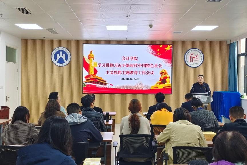 4月24日,会计学院学习贯彻习近平新时代中国特色社会主义思想主题教育工作会议在逸夫楼410会议室召开。会议深入学习贯彻习近平总书记重要讲话精神,按照党中央、省委和学校党委要求,对会计学院开展主题教育作出部署。会议由会计学院党委副书记郑大伟主持。
