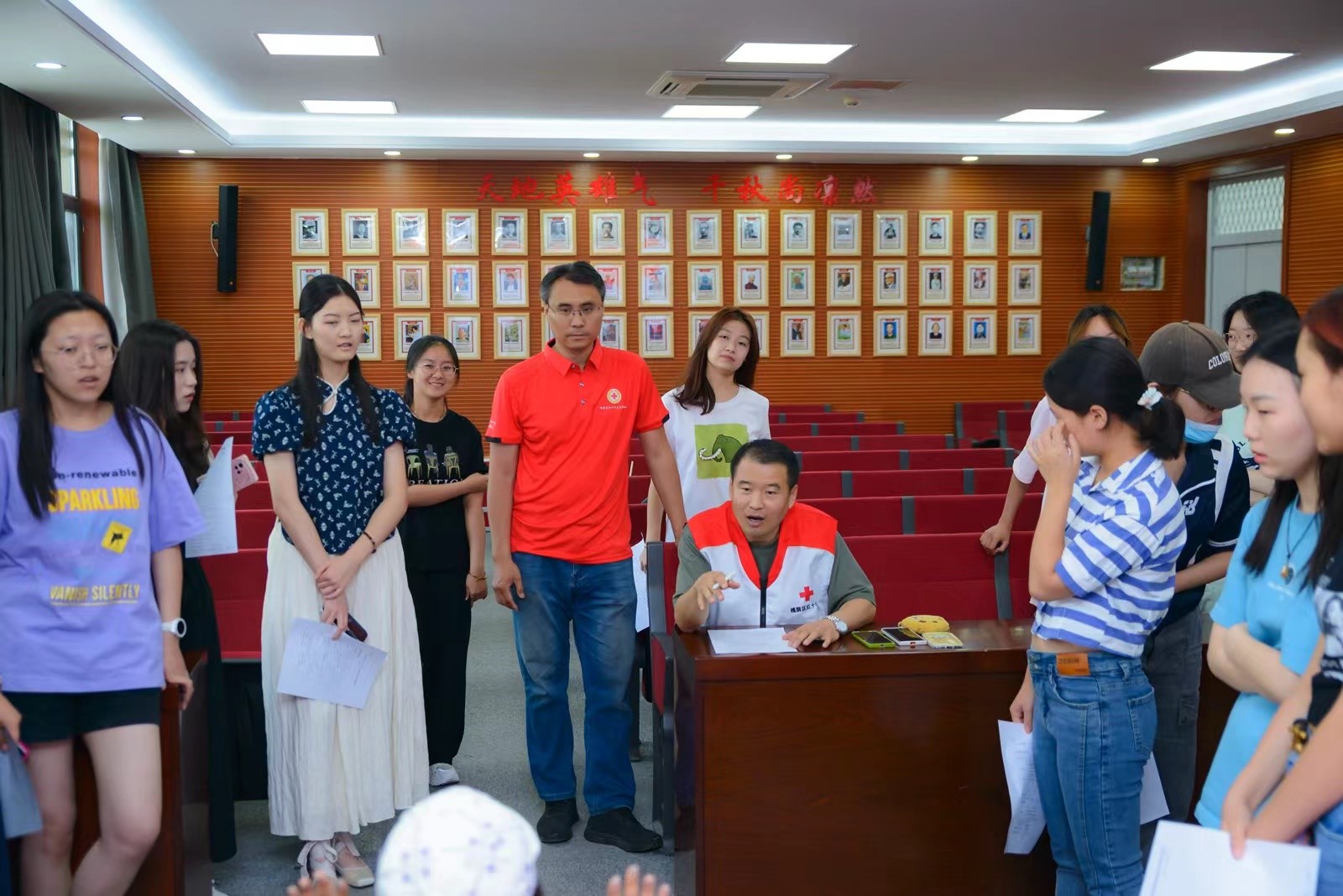 为增强大学生的应急救护意识,提升应对突发事件的处置能力,科普红十字救护员的专业知识,管理科学与工程学院于2023年6月25日下午邀请济南市槐荫区红十字会的王连军一行5人,为三梦社团支教成员和22级班团骨干开展应急救护员持证培训活动。