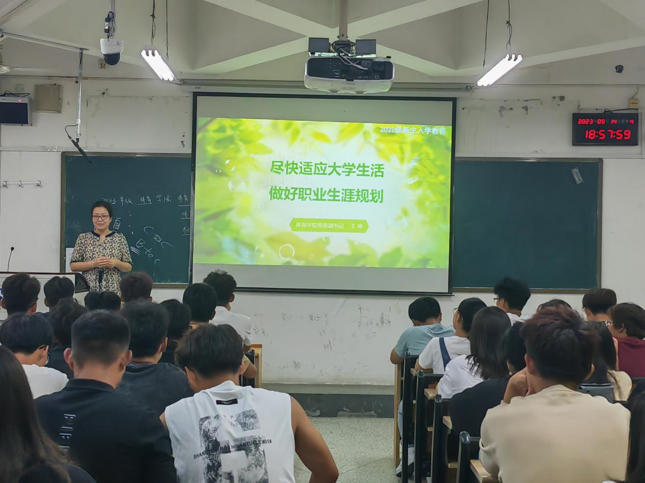 为了更好地帮助新生尽快适应大学生活,引导他们做好职业生涯规划,9月14日晚,体育学院在舜耕校区金融楼6217教室开展了2023级新生入学教育系列活动之适应性教育暨职业规划教育。体育学院党委副书记王坤以“尽快适应大学生活做好职业生涯规划”为主题为新生开展了入学教育,2023级全体新生参加。