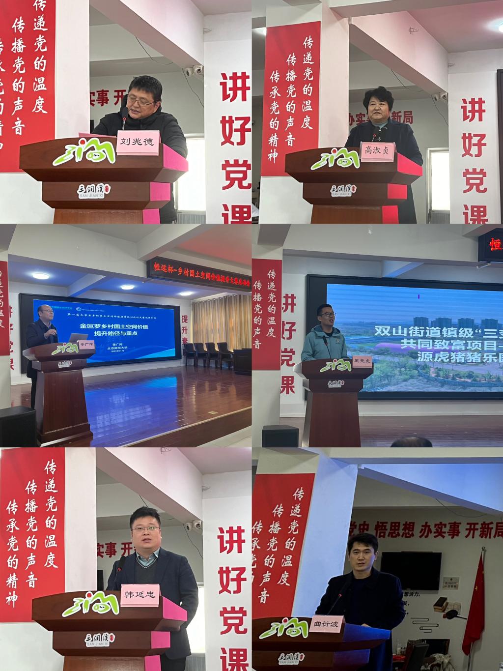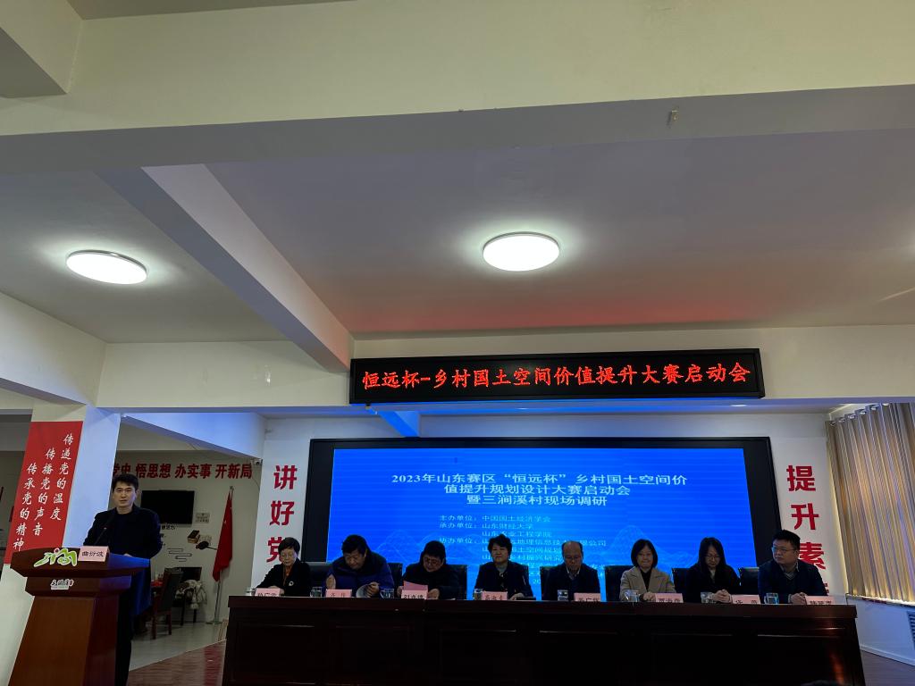 本次活动分为两个环节,上午为大赛启动会。我校公共管理学院院长贾海彦教授、山东省国土空间规划协会理事长刘兆德教授、山东恒远地理信息技术有限公司总经理韩延忠、济南市章丘区三涧溪村党委书记高淑贞、北京师范大学自然资源学院院长姜广辉教授、济南市章丘区三涧溪村第二党支部书记王元虎致辞并做专题报告,山东农业工程学院孙广云教授、山东农业大学齐伟教授、我校公共管理学院党委副书记许薇等参加活动,启动会由我校公共管理学院副院长曲衍波教授主持。