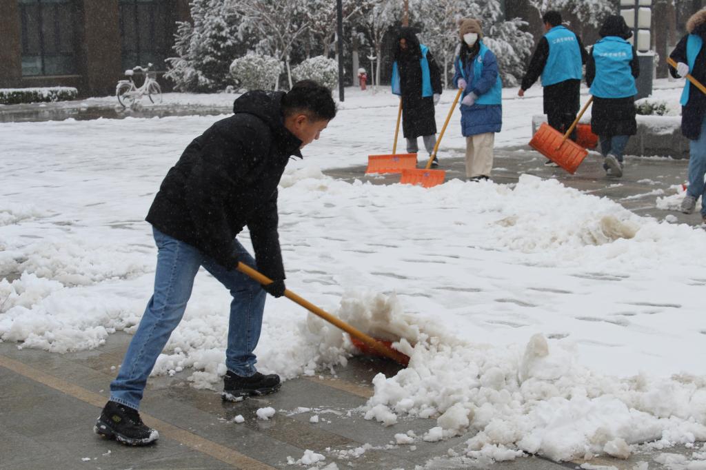 朔风凛冽,大雪纷飞。为保障校园道路畅通和师生出行安全,切实维护师生员工正常教学、生活秩序,12月11日上午,公共管理学院学工办主任张辉组织2023级同学在圣井校区开展志愿扫雪活动。