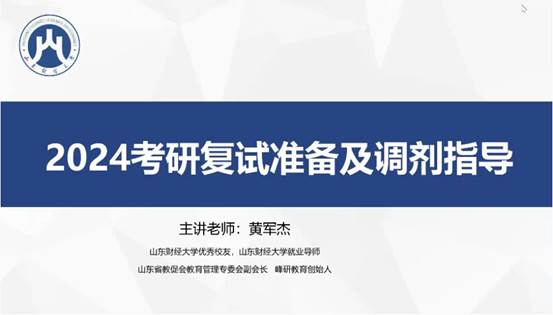 黄军杰是我校就业导师、山东省教育发展委员会理事,有着十余年的考研规划指导经验。黄老师主要围绕复试的关键节点、形势、考查内容及成绩计算、面试内容、复试资料查询等考研复试情况进行了详细讲解。黄老师对近三年调剂竞争形式进行了分析,具体解答了考研调剂常见问题。最后,黄老师为不同层次学生提供了多种复试准备思路,并鼓励同学们通过校内校外正规渠道收集更多调剂信息,不要盲目二战,抓住每一次工作机会和升学机会。