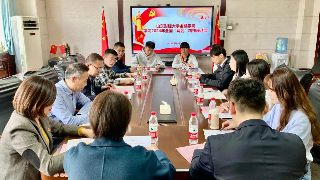 3月14日,金融学院学习2024年全国两会精神座谈会在舜耕校区第三会议室召开。金融学院党委书记吴红文、党委副书记康亚通、李开传、副院长王营、团委书记郭夕熙、研究生辅导员许静及部分学生代表参加了会议。座谈会由党委副书记康亚通主持。