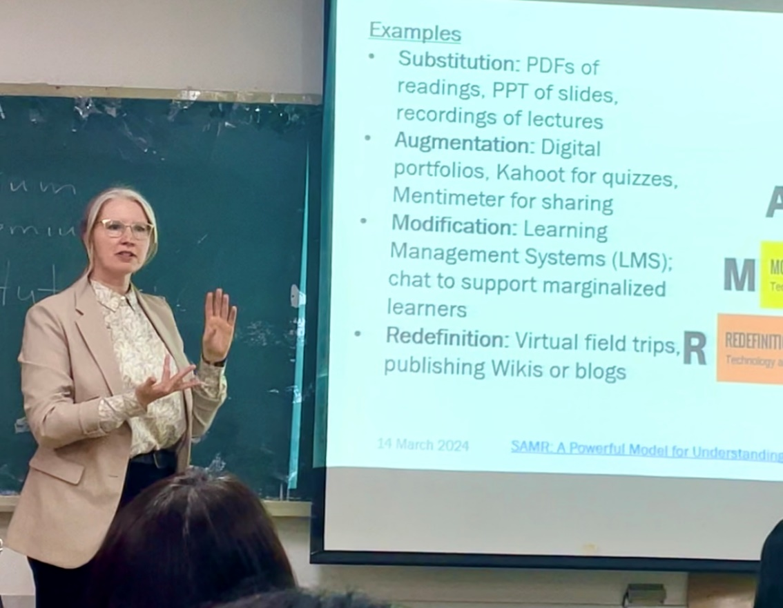 3月14日、21日下午,国际教育学院邀请Jennifer J. MacDonald博士在舜耕校区1106、2501教室举办系列讲座。Jennifer为国际教育学院师生分别作了题为“Technology in language education”“Ten ways international study can advance your learning and future career”的报告。讲座围绕技术赋能教学及学生留学与发展两大主题,引导教师和学生思考如何将智慧技术与语言教学进行结合,为学生专业学习及个人发展提供系列建议,报告现场气氛热烈。