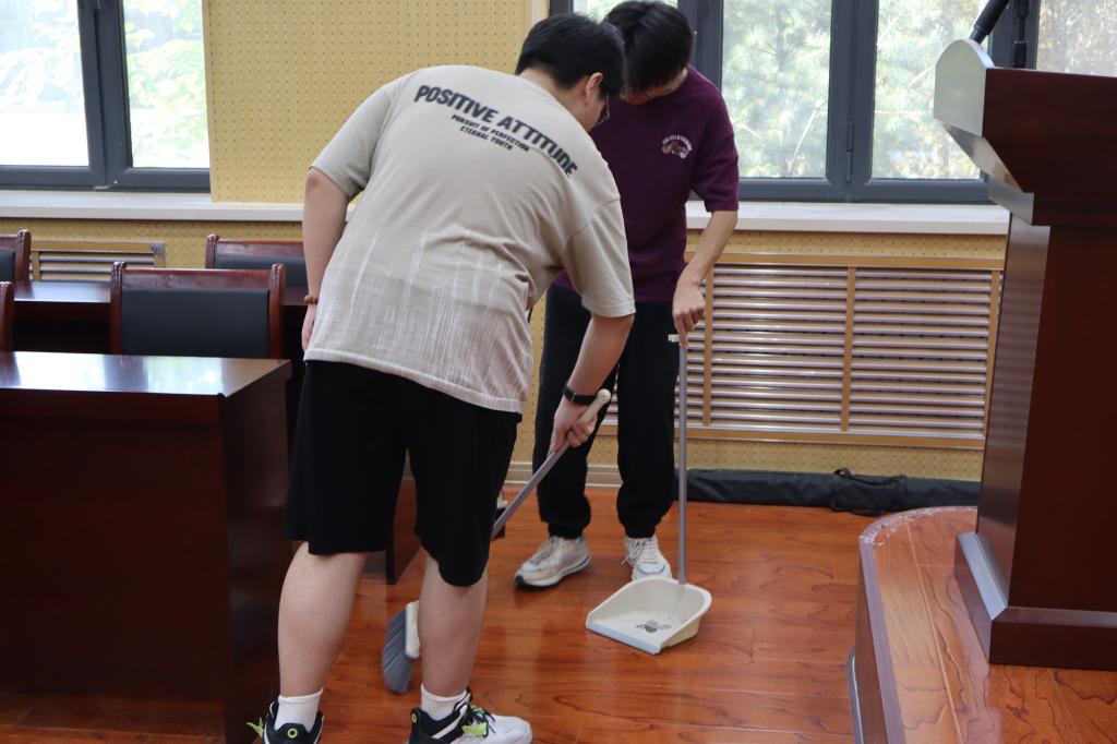 沉积的灰尘、角落的垃圾、堆积的杂物都被一一清理。在全员的认真打扫和默契配合下,值日活动顺利完成,公共管理学院的办公环境得到了很好的改善。