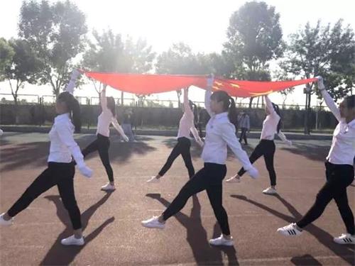活动进行第一项,升国旗,奏国歌,全体师生行注目礼。晴朗的天气,微凉的春风,国旗班健儿们矫健的身影彰显着财大学子的风采。