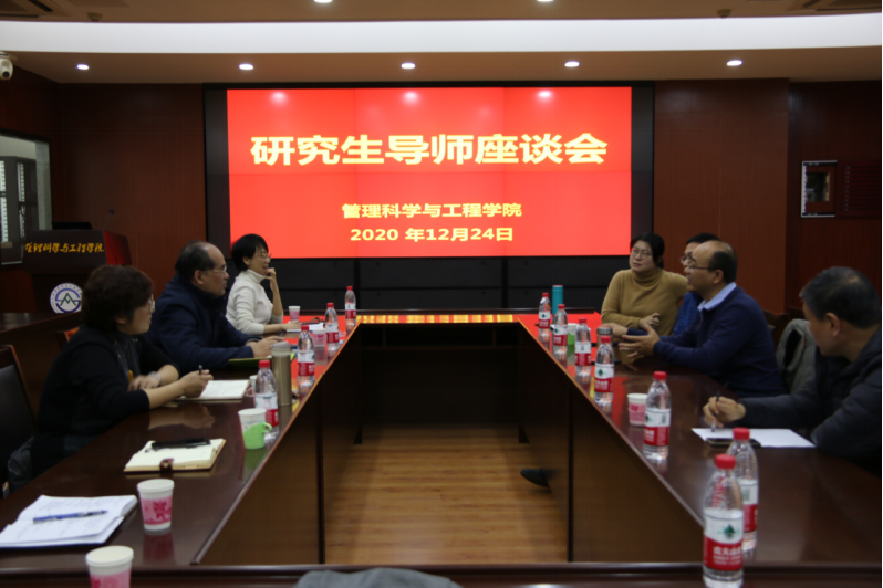 为了及时了解导师研究生培养中遇到的问题困难,12月24日上午,管理科学与工程学院于逸夫楼621举行研究生导师座谈会。学院负责研究生工作的党委副书记崔东峰、副院长马建华、研究生辅导员何丽、研究生教学秘书王娅姿和部分研究生导师代表参会。马建华副院长主持会议。