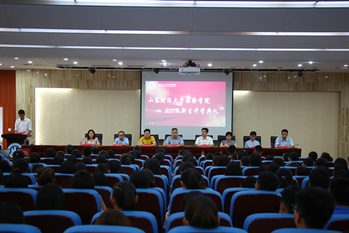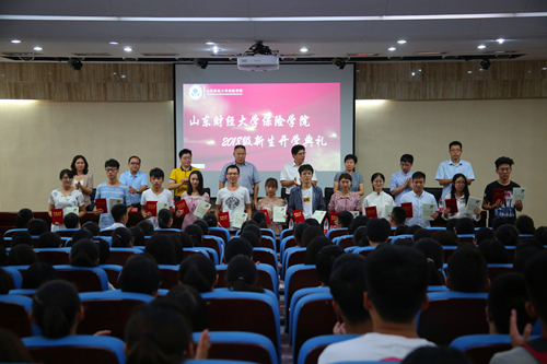 9月13日下午,保险学院2018级新生开学典礼在圣井校区隆重举行。学院党委书记朱传武、院长闫庆悦、党委副书记张娟、副院长于文广、教师代表孙秀清、黄守坤、于新亮,校友代表何旭、院办、学工办老师以及学院2018级全体研究生、本科生参加了本次典礼。开学典礼由党委副书记张娟主持。