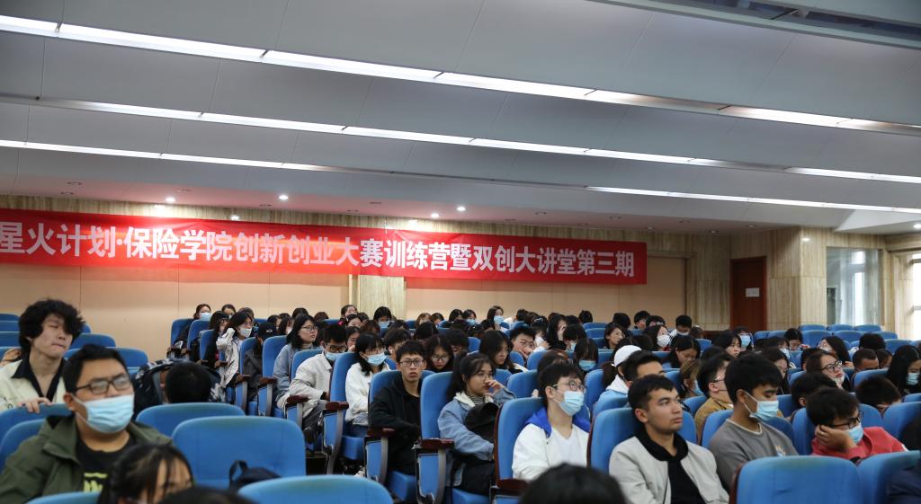 10月7日、10月16日下午,保险学院创新创业大赛训练营暨双创大讲堂第三期在圣井校区5号教学楼报告厅顺利举行,此次双创大讲堂邀请我校2018级学生王正琪进行经验分享,保险学院2019级、2020级和2021级本科生参加本次交流会。