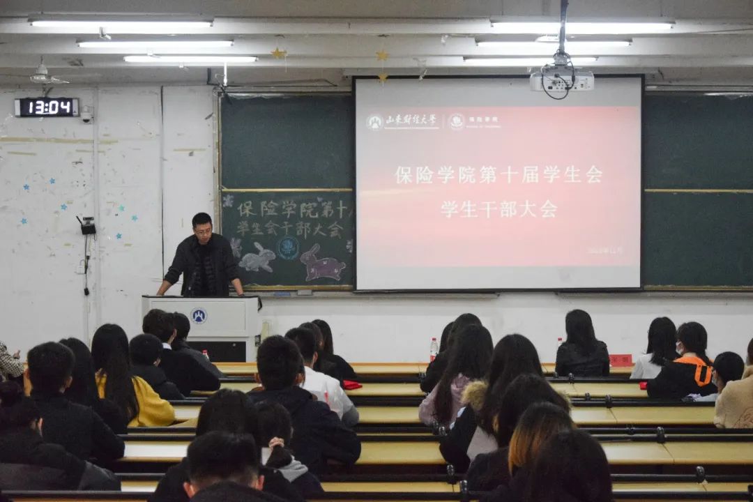 为加强保险学院学生会队伍建设,提高学生干部的综合素质与责任意识,推动学生与学院的共同进步,11月18日中午,保险学院第十届学生会学生干部大会在圣井校区敏行楼隆重举行。保险学院党委副书记张娟、辅导员陈萌老师、第十届学生会主席团、各部门部长和副部长以及2020级学生会干事代表参加会议。会议由陈萌老师主持。