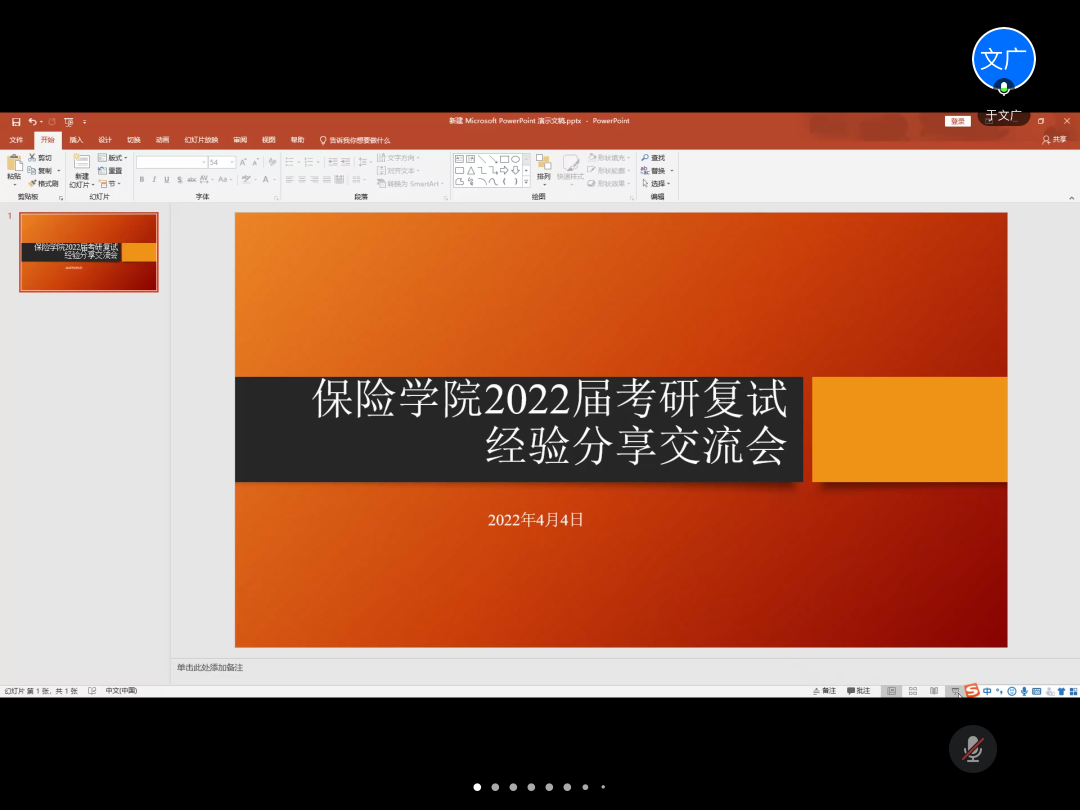 为帮助考研学子顺利应对复试或调剂,4月4日晚8:00,保险学院开展了线上考研复试经验分享交流会,帮助2022届考研学生提升复试信心,提高复试成功率,会议邀请了研究生复试拟录取的六名同学和保险学院院长于文广教授参加。经验分享交流会由辅导员陈萌老师主持。