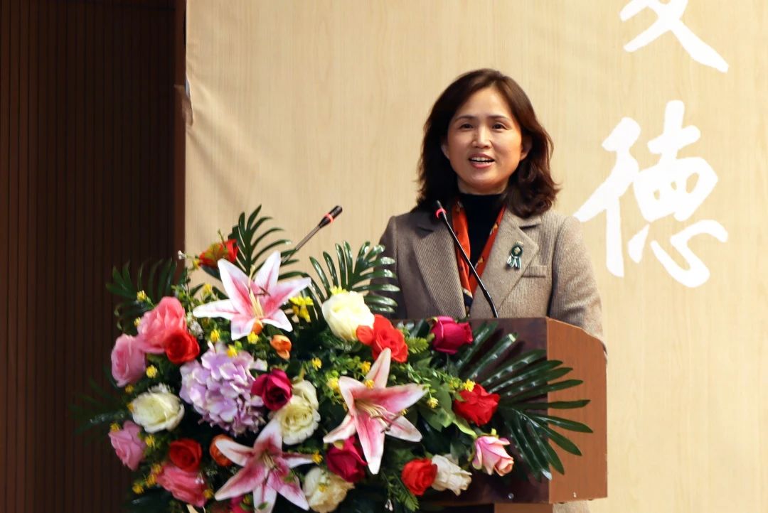 1994级校友、校企合作单位代表德华安顾人寿保险股份有限公司总经理助理、审计责任人张咏梅站在行业的角度为同学们讲述了保险行业的发展现状和行业前景,她表示公司希望和学院深入开展交流合作,探索高层次人才成长之路,将携手保险学院,尽力做到强化培养环节,提供良好的实习、实训、就业岗位,帮助同学们提高实践能力,充分利用校企合作优势,推动双方发展迈向新台阶。