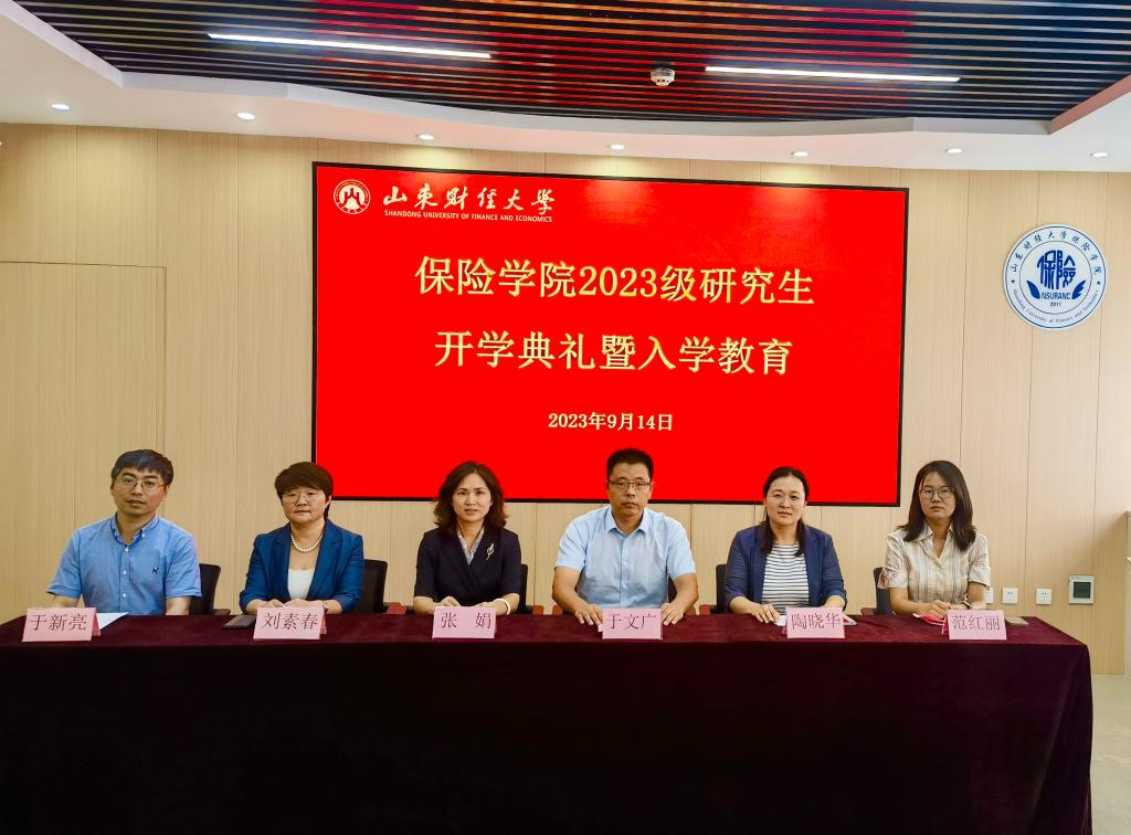 9月14日下午,保险学院2023级研究生开学典礼暨入学教育在舜耕校区保险学院会议室顺利举行。学院党委书记张娟,院长于文广,党委副书记陶晓华,副院长刘素春、于新亮,院长助理范红丽,辅导员王倩倩,在校生代表和2023级全体研究生参加典礼。典礼由党委副书记陶晓华主持。