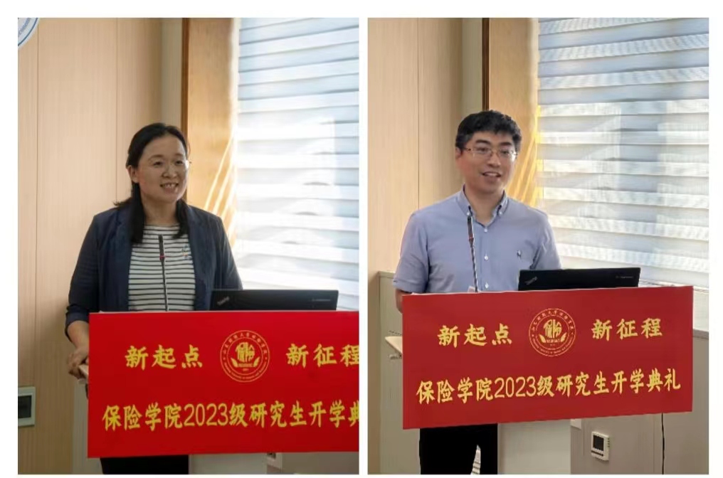 开学典礼在庄严的国歌声中拉开序幕。于文广代表保险学院全院师生向80名2023级研究生表示热烈欢迎并致辞。他表示,保险学院自2011年建院以来,在师资队伍建设、专业与学科建设、教学科研取得长足进步,多项考核指标位列前茅,为人才培养、学生成长与发展提供广阔平台。他鼓励同学们秉承“克明峻德,格物致知”的校训,立德修身,诚信做人;严谨为学,崇尚学术;发扬团队精神,创造良好的科研氛围。