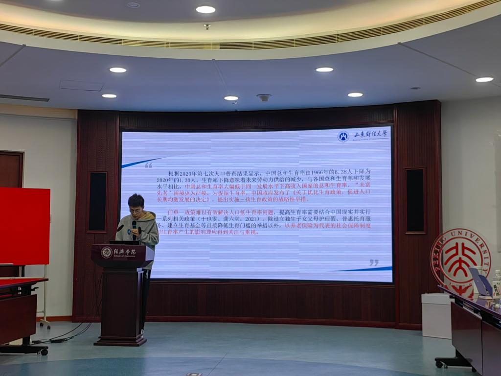 本届论坛主题为“新一轮全面深化改革:探索与展望”,10月27日下午为七组学术分论坛报告,10月28日为大会演讲。保险学院于新亮教授主持“城乡居民养老保险”学术分论坛,并对参会论文进行点评。另外,于新亮教授及其指导的硕士生王耀杰分别在“长期护理和大病保险”和“城乡居民养老保险”分论坛报告了论文《长期护理保险嵌入医养健康服务体系的福利效应与路径优化研究》和《农村社会养老保险领取的生育激励效应——基于模糊断点设计》。