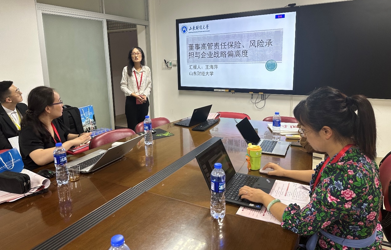本次论坛包括主旨演讲、平行分论坛、学生保险产品设计暨案例分析大赛、保险学教材建设论坛和保险专硕校外导师论坛。保险学院于文广主持了平行论坛——保险、再保险与高质量发展分会场和保险学教材建设论坛,刘素春副院长在保险学教材建设论坛上发言,介绍了保险学院教材建设情况。王海萍副教授在分论坛上做了《董事高管责任保险、风险承担与企业战略》的学术报告。