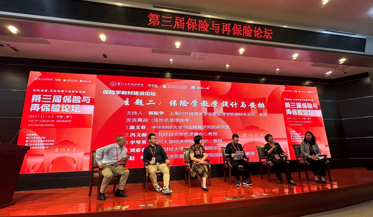 2023年11月4-5日,由厦门大学经济学院、王亚南经济研究院、邹至庄经济研究院和君龙人寿保险有限公司主办的第三届保险与再保险论坛在厦门大学顺利举行,保险学院于文广院长、刘素春副院长、王海萍副教授、学生郭佳佳和粱茗荃参加论坛。本次论坛以“风险减量、科技助推与高质量发展”为主题,汇聚150余位来自各大高校、保险行业知名公司、政府监管机构、行业协会代表参会,为促进我国保险与再保险领域的发展提供了良好的学术交流平台。