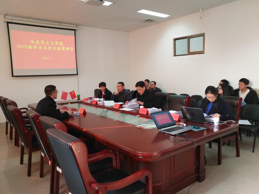 根据学校研究生院硕士学位论文工作进程安排,1月3日,马克思主义学院在图书馆606室举行2019届硕士学位论文预答辩。预答辩小组组长为马克思主义学院院长沈大光教授,小组成员有:刘长明教授、毛玉美教授、张高臣副教授、徐莹副教授。在徐莹副教授的主持下,会议严格按照程序进行。参加预答辩的硕士研究生向各位老师汇报了硕士学位论文的撰写情况,以及写作过程中遇到的难点和问题,各位老师逐一提出了问题和不足,并就下一步如何完善提出了切实中肯的建议。
