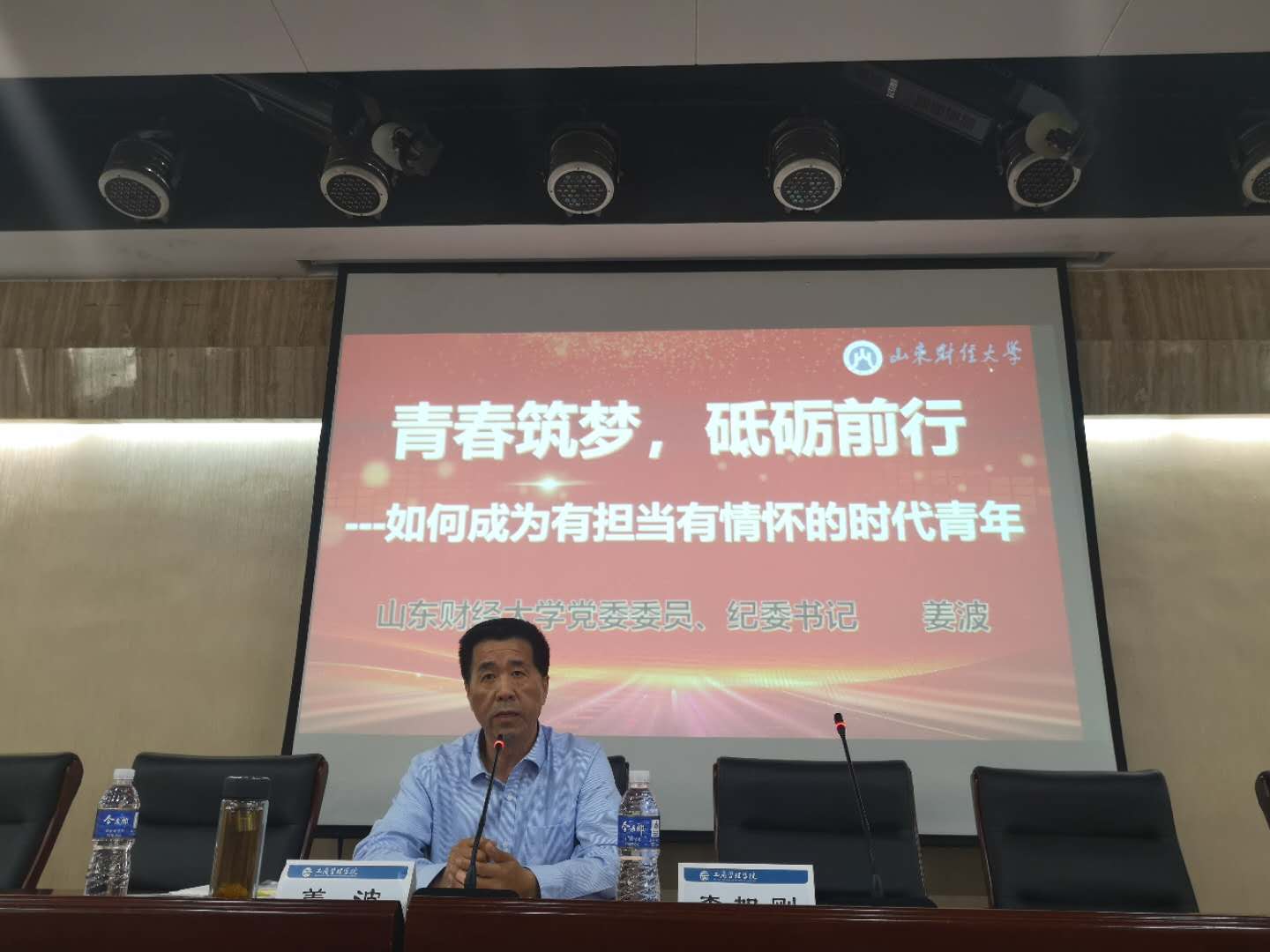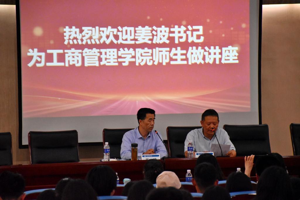5月16日下午,校党委委员、纪委书记姜波来到圣井校区,以“青春筑梦,砥砺前行——如何成为有担当有情怀的时代青年”为题,为工商管理学院师生上了一堂精彩纷呈、扣人心弦的思政课。讲座由工商管理学院党委书记李旭刚主持,党委副书记张红燕、圣井校区全体辅导员等200余名师生一起聆听了姜书记的讲座。