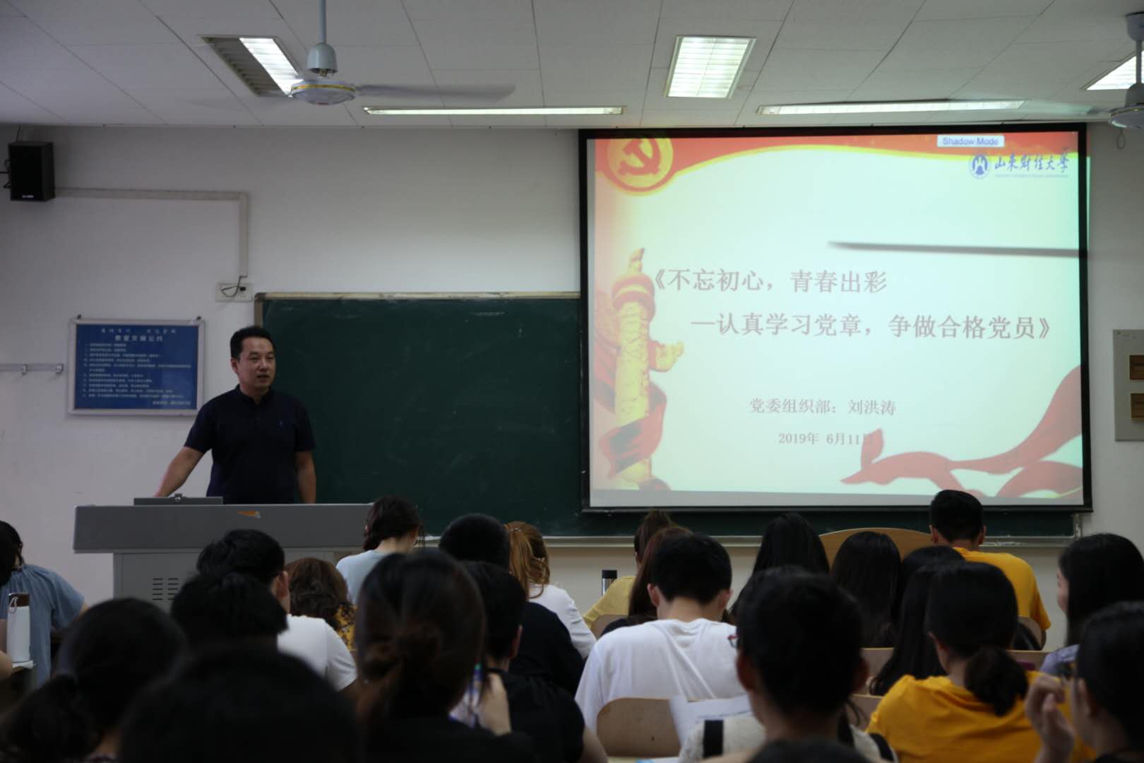 培训伊始,刘洪涛以倒序的方式为大家讲述中国共产党的发展历程,他强调是俄国十月革命的隆隆炮声为中国送来了马克思主义,马克思主义是被历史和实践证明的科学的思想,是中国共产党血脉的起源,正是有了马克思主义,才有了中国共产党,有了中国共产党,中国革命的面貌焕然一新了,这是应融入至每位共产党员的血液里的一句箴言!随后,他为大家介绍并讲解了历届中国共产党代表大会制定的中国共产党章程的制定历程、变动和调整的内容以及历届党章的突出特点。刘洪涛以互动的幽默方式与同学们充分交流,详细地讲解了马克思主义的三大组成部分:马克思主义哲学、马克思主义政治经济学、科学社会主义,同时,也为大家耐心解答了被丰富和发展的马克思主义是不是马克思主义等问题。