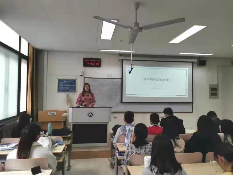 张晓宁就研究生的角色转化与论文写作主题两方面展开分享,主要谈到了课堂学习、团队学习、自主学习等方面心得。她讲到课堂知识要学以致用,寻找与自身研究内容的衔接点。每周组会,做好充足的准备,积极与老师和同学交流并虚心接受建议和指正。而后,向同学们详尽地介绍了如何完成一篇论文的写作,具体到确立选题、数据分析、写作方法、投稿注意事项、修改意见回复等,对同学们有很大帮助。