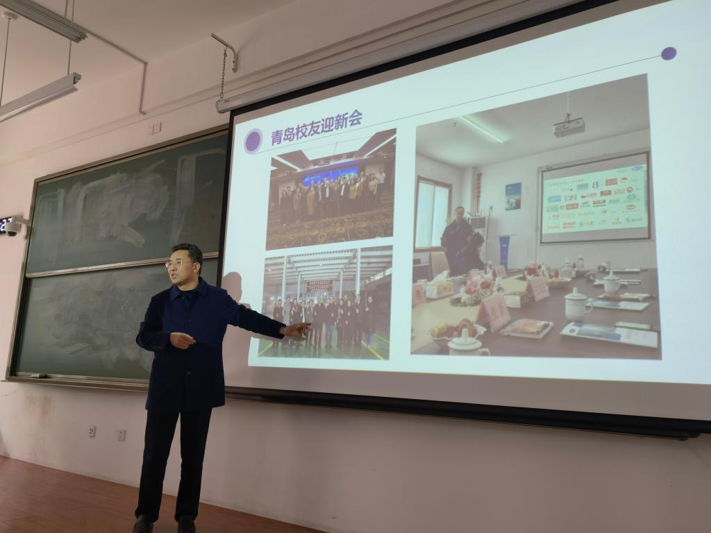 赵世民跟同学们谈了参加我校青岛校友迎新暨青岛校友企业联谊会“逐光力行”论坛活动的感受,通过众地阳光集团董事长、1984级计划统计专业校友王文正,信永中和会计师事务所有限公司合伙人、1988级财政专业毕强,青岛大上电器凯创冷链总经理、1994级贸经专业王勇等校友在各自事业开创过程中历经风雨、砥砺前行并持续开拓的故事,告诉同学们大学时期要树立远大的理想,确立远大的职业发展目标,努力成为对社会有突出贡献的人才。赵世民通过自身和一些校友职业发展的事例,告诉同学们要珍惜当下的学习时光,理性看待专业定位,在学好本专业的基础上努力开拓视野,勤读书读好书,让自己成为一名既有坚实专业基础,又广泛涉猎其他知识的通才和全才。赵世民告诉同学们在职业规划中要注意借助“巨人的肩膀”,多与成功校友、专业教师及辅导员们交流沟通,对自己要全面分析,既要做好大学期间生涯规划,也要适当考虑未来整体职业生涯规划,心中既要有诗和远方,也要脚踏实地,做好专业学习和实习实践,同时在校期间要严格遵守校规校纪,严格自律,保持终生学习,成为一名优秀的大学生。