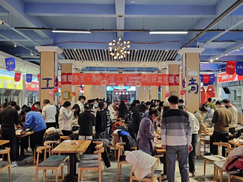 为弘扬传承中华传统文化、丰富同学们的校园生活,让同学们感受到工商管理学院大家庭的温暖,12月20日晚,学院在东苑餐厅举办了以“情暖冬至,‘饺’动心弦”为主题的研究生暖冬活动。学院党委书记赵世民、研究生导师代表杨静、研究生辅导员刘薇及全体研究生欢聚一堂,包饺子,迎冬至。