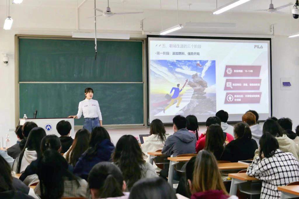 为增强学生的生涯规划与职业发展意识,提升自我认知水平与职业探索能力,明确未来奋斗目标,激发学习原动力,3月21日,学院于圣井校区8310举办“冀未来,明方向”系列就业指导讲座第二讲“生涯筑梦,职引未来”,特邀斐乐鲁豫区人力资源部负责人姜艳为学生们作职业生涯指导,学院2021级、2022级在校生到场聆听,讲座由辅导员李君主持。
