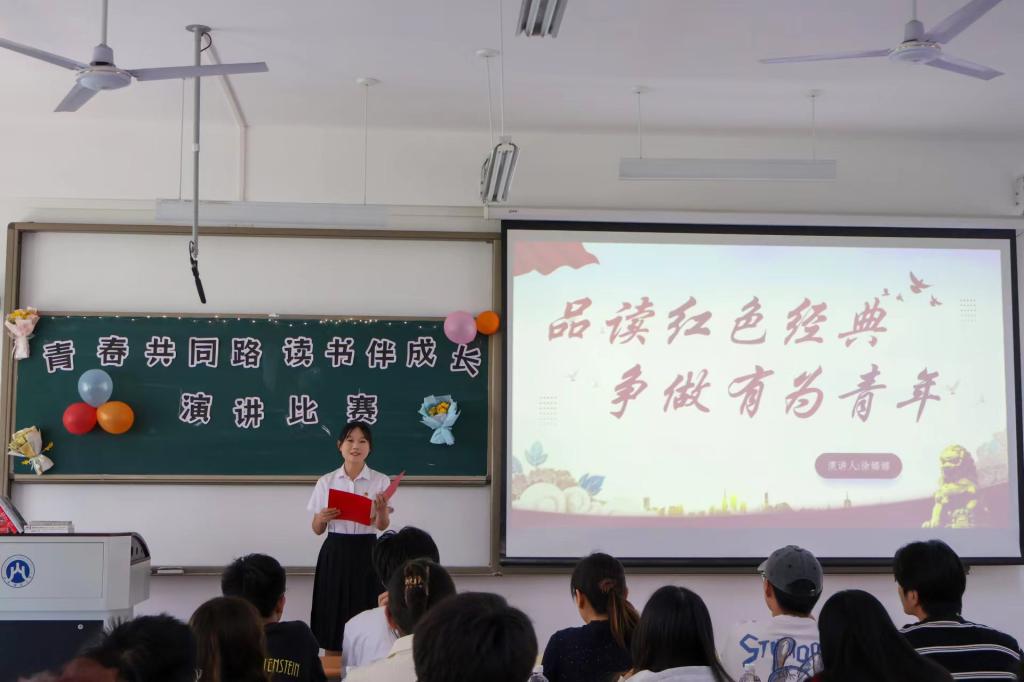 比赛开始,选手白梦迪、崔匀宣、柳宗杰、徐娜娜、李佳欣、李一豪、卢冠文、吴凯悦、于雅涵、崔员萦依次登场,他们的演讲包含深情,带大家领略中国文化的深厚底蕴与历史兴衰,也让同学们感受到了书香伴随成长的温馨与力量;其中武凯悦带来的《地上的火焰抵得上天国的芬芳》,以独特的感受,用生动的语言文字,让我们深刻体会到了人性的复杂和文学的魅力;徐娜娜的《品读红色经典》,让我们感受到党一路走来的艰辛与成长的蜕变,让我们看到了阅读如何点亮内心的明灯,指引我们前行。
