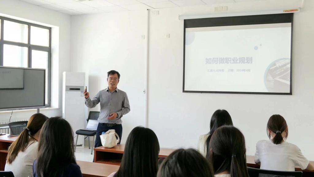 纪传贵将理论知识、实践经验和丰富的案例相结合,从探索、定位、发展、升级四个方面为同学们展开深入讲解,语言幽默,层层递进让同学们主动了解为什么进行职业规划、职业规划的重要性,怎样更好的进行职业规划以及每个阶段如何发展等,着重强调了职业生涯规划的整体性与完整性。在讲解过程中,他也指导同学们如何进行自我探索、自我定位、如何发现自己和探索自己的优势与价值观,从而弥补差距,更加精准的明确自身目标,制定适合自己的发展战略与计划,将每个阶段的计划分成容易实现的小目标,一步一步不断努力奋斗,在交流中不断校正发展方向,最终完成蓝图绘就,实现梦想启航。