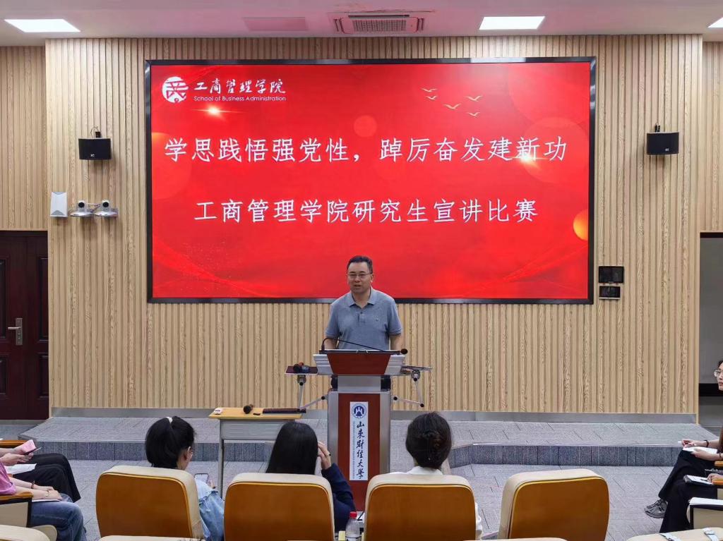 为深入学习贯彻习近平新时代中国特色社会主义思想,进一步推动党建工作与教育教学深度融合,着力培养担当民族复兴大任的时代新人,5月15日下午,学院在逸夫楼103报告厅举办“学思践悟强党性踔厉奋发建新功”主题宣讲比赛。学院党委书记赵世民、党委副书记彭艳红、辅导员老师及全体研究生参加。