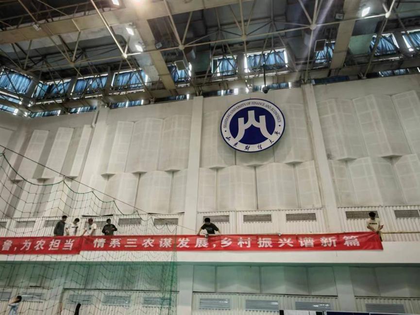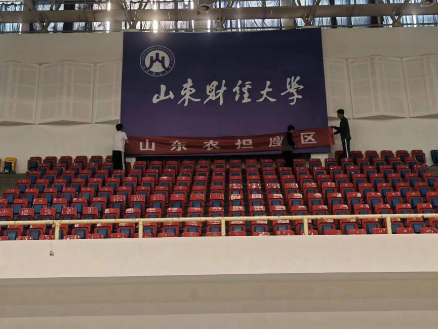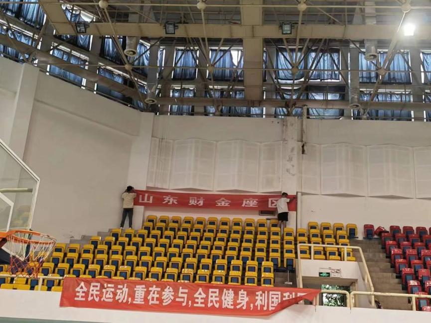 在活动中,学生党员和学生干部充分发扬不怕苦、不怕累、不怕脏的精神,奋力争先。大家积极准备清洁工具,认真打扫体育馆内看台、座椅、篮球场、地面等多处场所;并仔细检查舞龙舞狮道具服装;还为即将到来的2023年山东省财政与金融企业职工运动会悬挂横幅,为体育馆增添了一抹新鲜色彩。