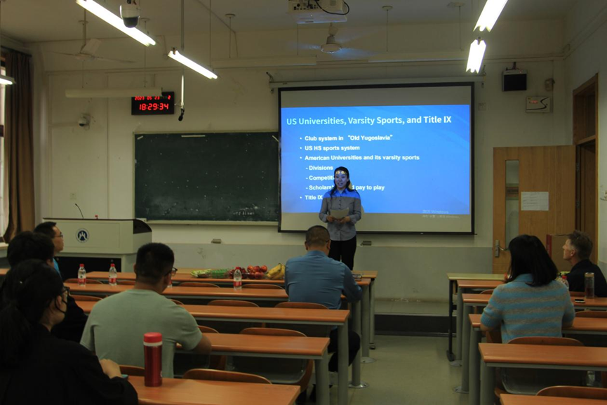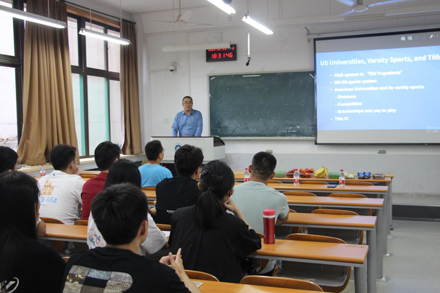 Miren Ivankovic教授先以“旧南斯拉夫“俱乐部制度为例,介绍了国外较为成熟的体育管理制度,引出北美运动员与中国运动员选拔培训机制的不同。他指出美国大学体育比中国大学体育的发展相对成熟,对于比赛、奖学金以及参加比赛的报酬都有明确的规定,但美国的体育管理体系也有自身的不足,俱乐部与运动员收入发配、普通运动员与体育明星之间也充满矛盾。Miren Ivankovic教授的讲座介绍了体育管理的产业现状和国际发展前沿,对体育学院师生具有知识扩展和启示作用。