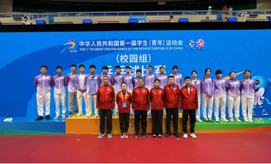 11月12日,中华人民共和国第一届学生(青年)运动会(校园组)乒乓球项目决赛在广西省玉林市博白县体育中心圆满落下帷幕。本次比赛由教育部、国家体育总局、中国共产主义青年团联合主办,广西壮族自治区人民政府承办,吸引来自全国38支代表队的232名优秀学子走进魅力博白,展示青春风采,追逐荣誉梦想。本次比赛得到了山东省教育厅的高度重视,我校体育学院负责乒乓球项目的组队和备战参赛工作。根据备战需要,体育学院自3月份开始组织了选拔赛以及多次集训,参加了预赛并顺利闯进决赛阶段。经过七天激烈争夺,山东队获得一枚银牌和多项前八的优异成绩,队伍获评体育道德风尚奖。