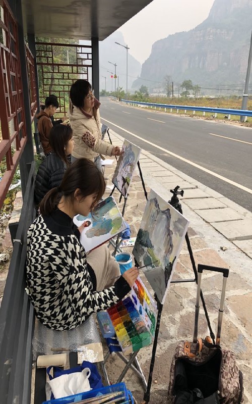 太行山写生基地位于河南安阳林州市境内,峡谷林立,沟壑纵横,原生态地貌和村落保存完好,强烈的视觉冲击和景物美感赋予大家良好的创作灵感,同学们在老师的指导下,每天完成写生作品3件以上,圆满完成写生教学任务。