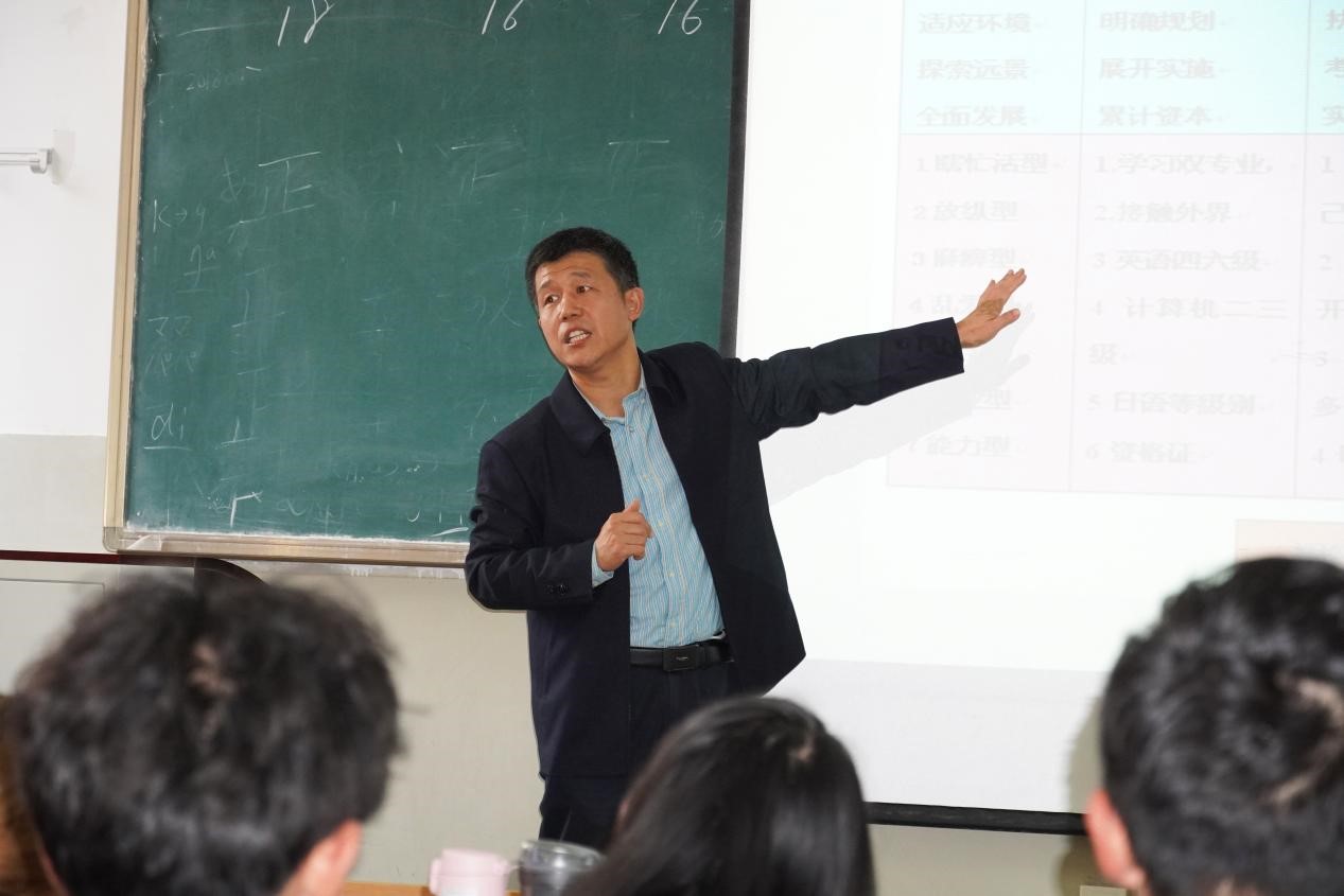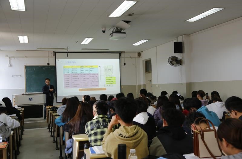 刘思锋老师以游戏互动的方式,让同学们通过想象十年后的自己并把想象付诸于画面,引导同学们评估自我、分析现状、认识真正的自己。随着讲座内容不断深化,刘思峰老师陆续抛出引人深省的问题,宏观与微观相结合,鞭辟入里的阐述了生涯规划的重要性,把学业规划和职业规划相融合,详细的剖析了两者的关联性和过渡关系。一方面告知有考研方向的同学进行分层规划,分学期规划的重要性,另一方面敲响同学认真学习的警钟,提高自身修养和就业竞争力。紧接着,刘思锋老师通过梦想实现家林志颖的事例,告诉大家梦想与实践的重要性。此外,刘思峰老师讲述了不同类型的道路,并指出了几个错误观念,帮助同学了解不同的道路。也阐述了生涯规划目标需要突破障碍,开发潜能,自我实现三个步骤,并得出“眼界决定境界,规划才能提高眼界”的结论。最后,刘思锋老师指出大学需具备的最重要的能力:慎独—非淡泊无以明志,非宁静无以致远;读书—抵制碎片化信息、开展深入系统学习;思考—学而不思则罔,思而不学则殆;实践—在实践中体验,在实践中创新。