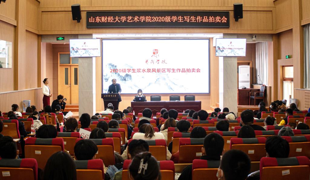 经过一周的预展,28日下午,艺术学院第八届学生写生作品拍卖会在燕山校区3号教学楼报告厅举行,学院师生、校内外艺术爱好者两百余人参加,拍卖活动由艺术学院教师、国家注册拍卖师周玮佳和六名实习学生先后主持。