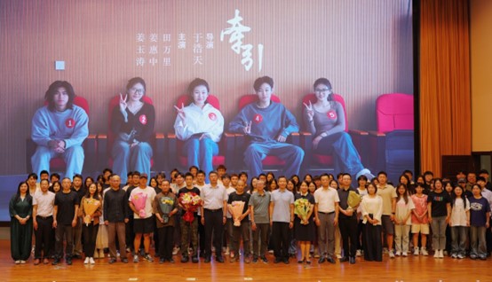 刘旻航代表学校向艺术学院、向于浩天同学及亲朋好友、全体演职人员表示热烈祝贺。他谈到,这是我校历史上首次为在校学生举办的首映仪式,充分展示了我校坚持兼容并包、全面培养学生综合素养的育人导向,也是我校多年来坚持文化立校、文化强校战略,全面深化校园美育浸润和人文精神涵养,坚持五育并举、促进学生全面成长成才的一个范例,学校将始终为有青春梦想、创新热情和专业特长的学生搭建广阔的舞台和平台。于浩天同学作为一名普通的本科学生,出于对电影艺术的执着与热爱,也出于对中国传统文化的痴迷与敬仰,坚守初心,笃行不怠,终于能够十年磨一剑,在本科毕业前,导演完成了个人在艺术生涯中的微电影处女作《牵引》,影片高唱主旋律,题材新颖、内涵丰富,拍摄剪辑水准高,观影效果非常好,是我校在校学生第一个独立导演完成的电影作品,非常值得鼓励和赞扬。于浩天本身就是我校四年本科教育的一件成功作品,也是学校积极践行家校融合、行业与专业融合,多措并举协同育人的一个成功作品。希望广大青年学生要忠于梦想,积极实践,勇于追梦、筑梦、圆梦,用孜孜以求的不懈奋斗谱写绚烂多彩的青春华章。