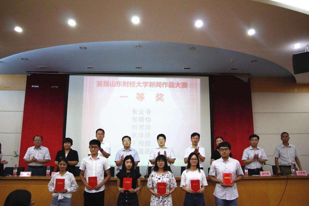 6月26日下午,由我院承办的山东财经大学首届新闻作品大赛颁奖典礼在舜耕校区国际学生公寓二楼会议厅举行。山东财经大学副校长张书学、中国新闻社山东分社社长邱江波、校党委宣传部部长于洪良、校学生工作处副处长孙丽华、校团委副书记张超,我院党委书记姜竹青、院长孙丽君、党委副书记李开传、副院长牟雷出席本次会议,新闻系教师代表、获奖同学代表以及2015级新闻系学生也参加了此次会议,颁奖典礼由学院党委书记姜竹青主持。