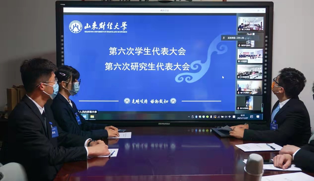11月27日上午,山东财经大学第六次学生代表大会、第六次研究生代表大会在燕山校区召开。文学与新闻传播学院团委书记沙林斌,文学与新闻传播学院代表团于线上参加了本次会议。会议全面贯彻党的十九届六中全会精神,号召全校青年学子们要以实干精神担当新时代新使命,做有情怀的新时代追梦人。