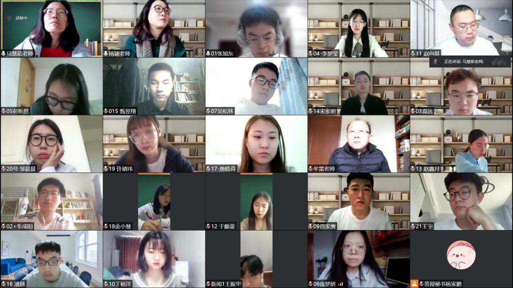 首先,每位同学对毕业论文的选题、结构、主要观点展开论述,答辩小组的老师们针对同学们的毕业论文从不同角度提出问题,同学们根据自己的知识储备及见解作出回答,老师们对同学们的表现作出评价并提出对论文进一步的指导意见。通过大家的共同努力,这场特殊时期进行的线上答辩顺畅有序,答辩全程录音录像留存备案,确保了答辩和旁听的效果,保证了整场答辩会的公开、公正。