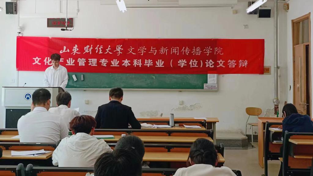 答辩会分为答辩人陈述、教师提问与答辩人答辩三个环节进行。首先,每位同学从毕业论文的选题背景、研究意义、主要观点等方面展开论述,各答辩小组的老师结合同学们的陈述情况依次进行了现场点评并提出相关问题,给出了进一步的论文修改建议。随后,针对老师的各种提问,同学们根据自己的知识储备及见解作出回答。