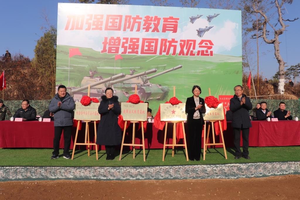 仪式在庄严的迎国旗中拉开帷幕。24名学生组成的国旗护卫队正步通过主席台,在雄壮的国歌声中,五星红旗冉冉升起。陈晓兰、宋朋朋、董方军、徐思生共同为“我校深圳东方汇泉金融控股集团校企合作实习实训基地”“我校乡村振兴学院实践教学基地”“沂源县桃花岛爱国主义教育基地”“沂河源红五星国防教育营地”揭牌。