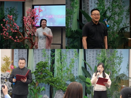 文学与新闻传播学院边慧老师带来的歌剧选段《一首桃花》,用舒缓、轻柔的歌声吟唱出了新月派诗人林徽因对桃花之美的喜爱之情;赵连昌老师在诗歌《开花》的吟诵中,抒发了对自然、生命的爱与眷恋。管理科学与工程学院吕晓燕老师与校友刘宗带来的诗朗诵《那一晚,再别康桥》,将文字变为声音,让我们看见了诗人笔下流转的康桥美景,声情并茂的朗诵将诗人浓浓的离愁与不舍表达得淋漓尽致。