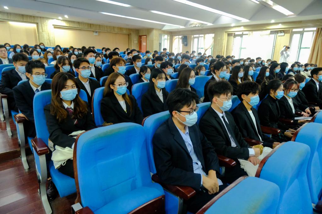 李玉成向学生干部发表致辞。他对学生干部为学院做出的贡献与工作成绩表示充分肯定,对新一届学生会成员的加入表示热烈欢迎,同时向所有学生干部提出四点建议,一是要坚定理想信念,厚植家国情怀,争做有理想、敢担当、能吃苦、肯奋斗的新时代好青年;二是要保持优良作风,发挥模范作用,不断加强思想作风建设;三是要扎实做好本职工作,不断提高综合能力,保证学习上进步、工作上出色;四是要增强团队意识,打造高效团结奋进的学生会团队,更好地为学院师生服务、助力学院发展。他强调,作为一名学生干部,同学们要做到凡事有交代、件件有落实、事事有回音,发挥模范作用、带头履职尽责,并希望全体学生干部携手同心,打造一支高效团结奋进的统数学生团队。